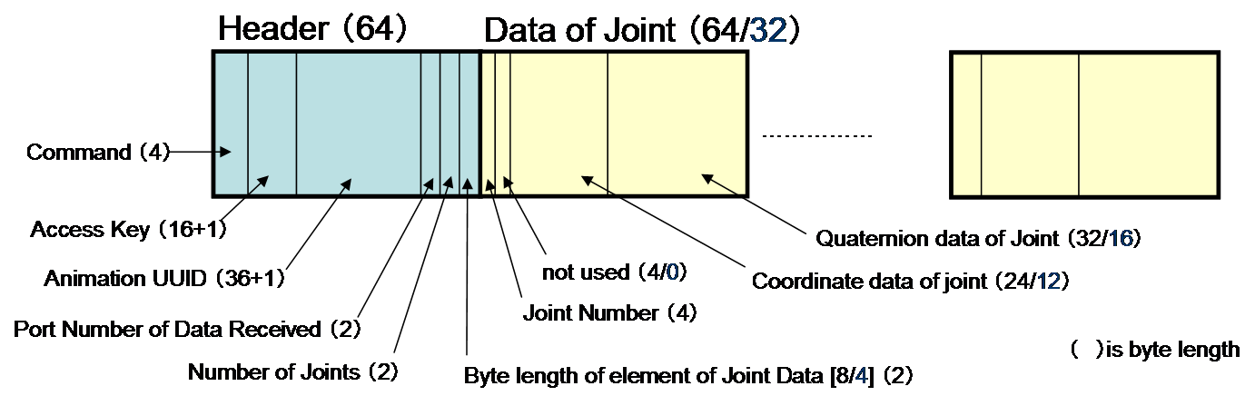 Header(64) + Data of Joint(64/32) X Number of Joints(11) = 768/416 bytes